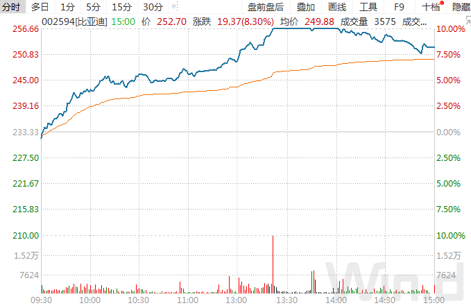 新能源车龙头比亚迪午后一度涨停,收盘同样涨幅达8.30%。根据乘联会最新公布的车企4月销量数据显示,由于受疫情影响,除了比亚迪之外,其他主流车企销量同比降幅都比较大。得益于在新能源车领域巨大的优势,比亚迪汽车已经连续两个月单月销量突破10万台,实现了逆势增长,4月狭义乘用车零售销量10.5万辆,同比增长138.4%,市场份额达到10.1%,位列第一。