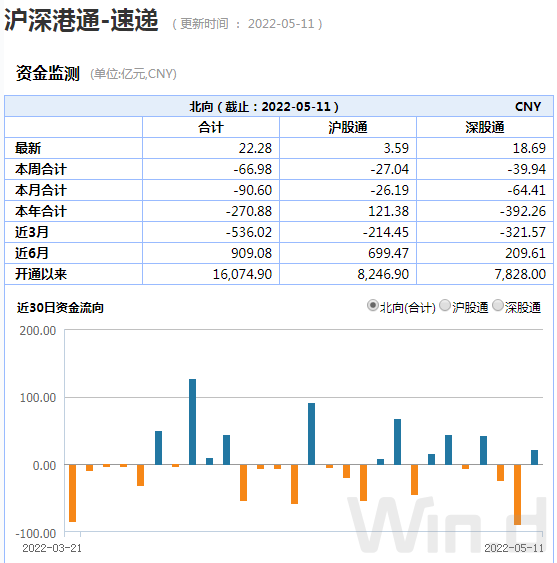 5月11日,北上资金净买入22.28亿元,从4月以来北上资金变动趋势来看,买入、卖出交替出现,整体资金变动仅略有减少。